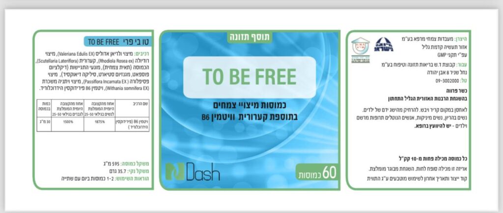 תוסף טו בי פרי (TO BE FREE) המכיל 60 כמוסות מומלץ ליטול בין 1-2 ליום