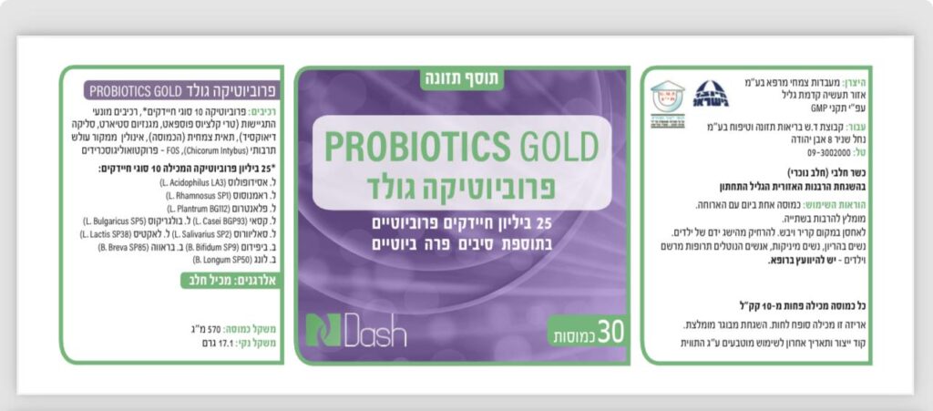 תוסף תזונה פרוביוטיקה גולד מכיל: